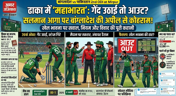 क्रिकेट के नियमों (MCC) के मुताबिक, जब तक गेंद ‘डेड’ नहीं हो जाती, तब तक बल्लेबाज को क्रीज के अंदर रहना अनिवार्य है। थर्ड अंपायर ने नियमों का हवाला देते हुए सलमान आगा को ‘आउट’ करार दिया। इस फैसले से निराश सलमान गुस्से में सिर हिलाते हुए पवेलियन लौटे। सोशल मीडिया पर इस घटना को लेकर बहस छिड़ गई है—कुछ लोग इसे नियमों के तहत सही बता रहे हैं, तो कुछ इसे बांग्लादेशी टीम की खेल भावना (Spirit of Cricket) की कमी कह रहे हैं।