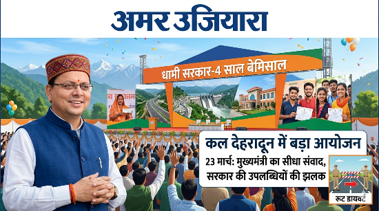 देहरादून। उत्तराखंड की पुष्कर सिंह धामी सरकार के सफल कार्यकाल के 4 वर्ष पूरे होने के उपलक्ष्य में कल, 23 मार्च को राजधानी देहरादून में एक भव्य राज्य स्तरीय कार्यक्रम का आयोजन किया जा रहा है। ‘धामी सरकार-4 साल बेमिसाल’ के नारे के साथ आयोजित होने वाले इस कार्यक्रम में मुख्यमंत्री स्वयं प्रदेश की जनता से सीधा संवाद करेंगे और पिछले चार वर्षों की उपलब्धियों का लेखा-जोखा पेश करेंगे।